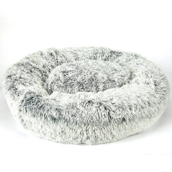 Ultra cozy round bumper-style beds with super plush faux fur. Comfortably stuffed round shape helps pets feel cuddled and secure. High bolster sides provide for head and neck support.
