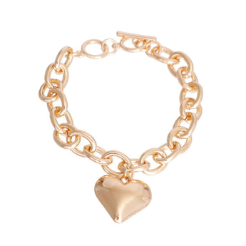 Adorable Gold Metal Cable Chain Toggle Bracelet Featuring Heart Charm. Charm measures 1 inch.
