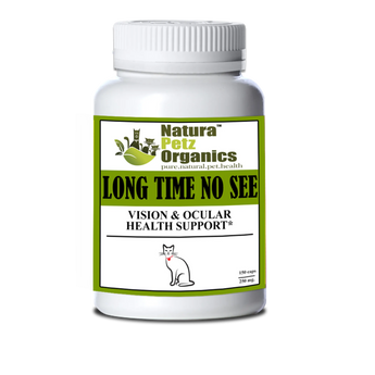 LONG TIME NO SEE* CAPSULES is a Master Blend of herbals and marine extracts formulated to help support normal eye function and vision health in dogs and cats and is used in a traditional herbal medical system to help support the proper maintenance of ocular strength and delicate tissues of the cornea, retina and macula.
