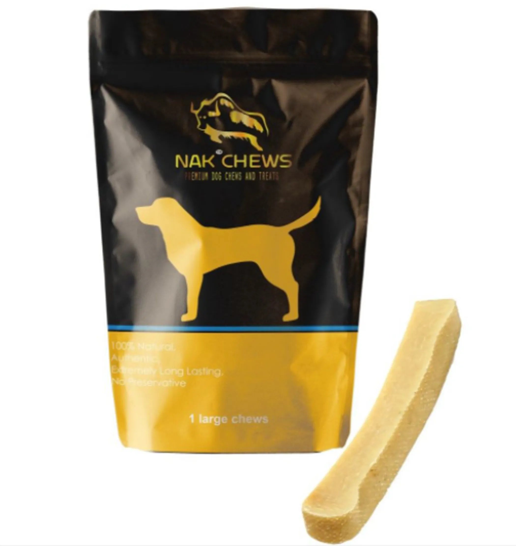 Nak Dog Chew is Hand Made from 100% Yak milk from The Himalayas which means yummier , Human -Grade, Easily Digestible , Smoky Flavor long lasting Dog Chew, Easily Digestible. No Preservatives, No Odor, No Staining, Help keeping your dog's mind Stimulated, Reduces Stress, Anxiety and Boredom. Trust Nak Dog Chew for best Customer Service and Canine Welfare. Small Dog Chew Pack made only from 100% Yak Milk 3 Pcs/7.4 Oz for Dogs weighing 20-80 Lbs. Nak Chew is a long lasting delicious smoky flavor dog chew made with 100% yak milk. The only ingredients used in our dog chews are yak milk, salt and lime juice. This recipe of making hard cheese has been used by the people of the Himalayas since ancient time which is still traditionally used for human consumption. Our Dog Chews are lactose and grain free, easy on tummy. Offering Nak Dog Chew to your dog helps her to scrape away plague and bacteria making sure that the dental hygiene is tip-top, it also helps to eliminate bad breath, swollen or irritated gums. It is also very helpful for teething puppies to relieve pain and stimulate the growth of teeth. Nutritional facts: Milk Protein (Min): 67.6% Moisture (Max): 9% Carbohydrates (Max): 0% Total Ash (Max): 6.1% Fat (Min): 0.9%