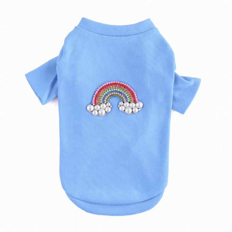 New rainbow tee collection is made form cotton jersey fabric, perfect for a warm sunny day in the park or a play date. The baby tee features a crystal rainbow and pearl appliqu? to keep your baby stylish. Available in Blue, Pink and Aqua.